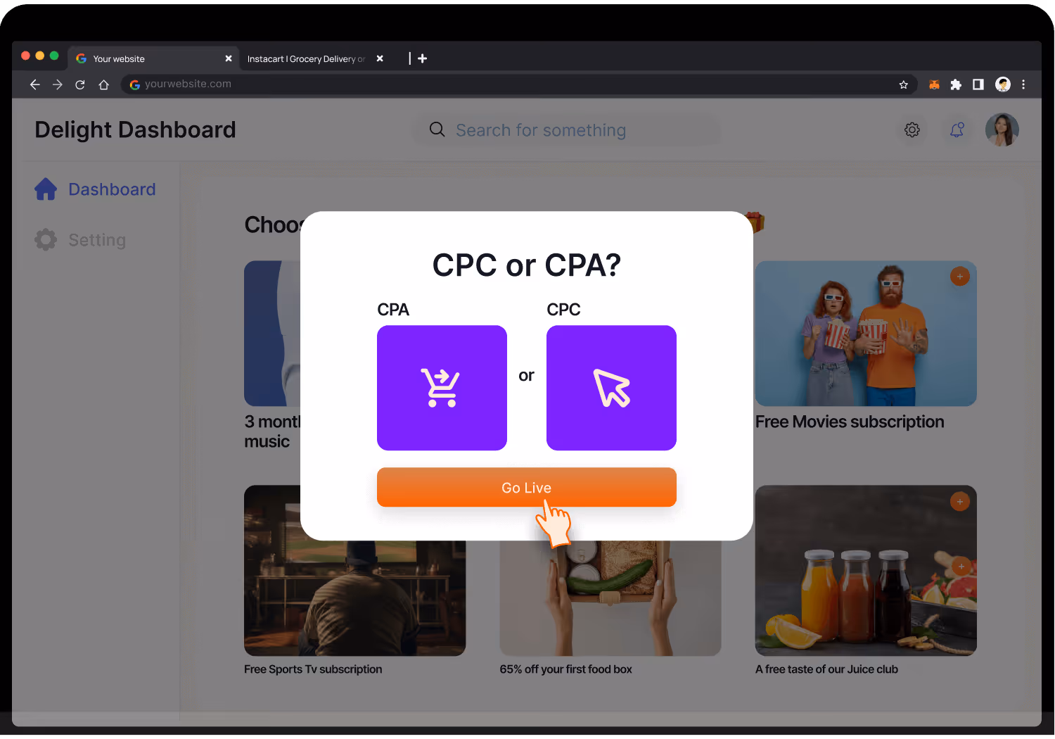 All we need is your offer and CPA or CPC. From there our team will deliver a proposal featuring available Delight Hosts and active loyalty platforms, making it easy for you to launch quickly.